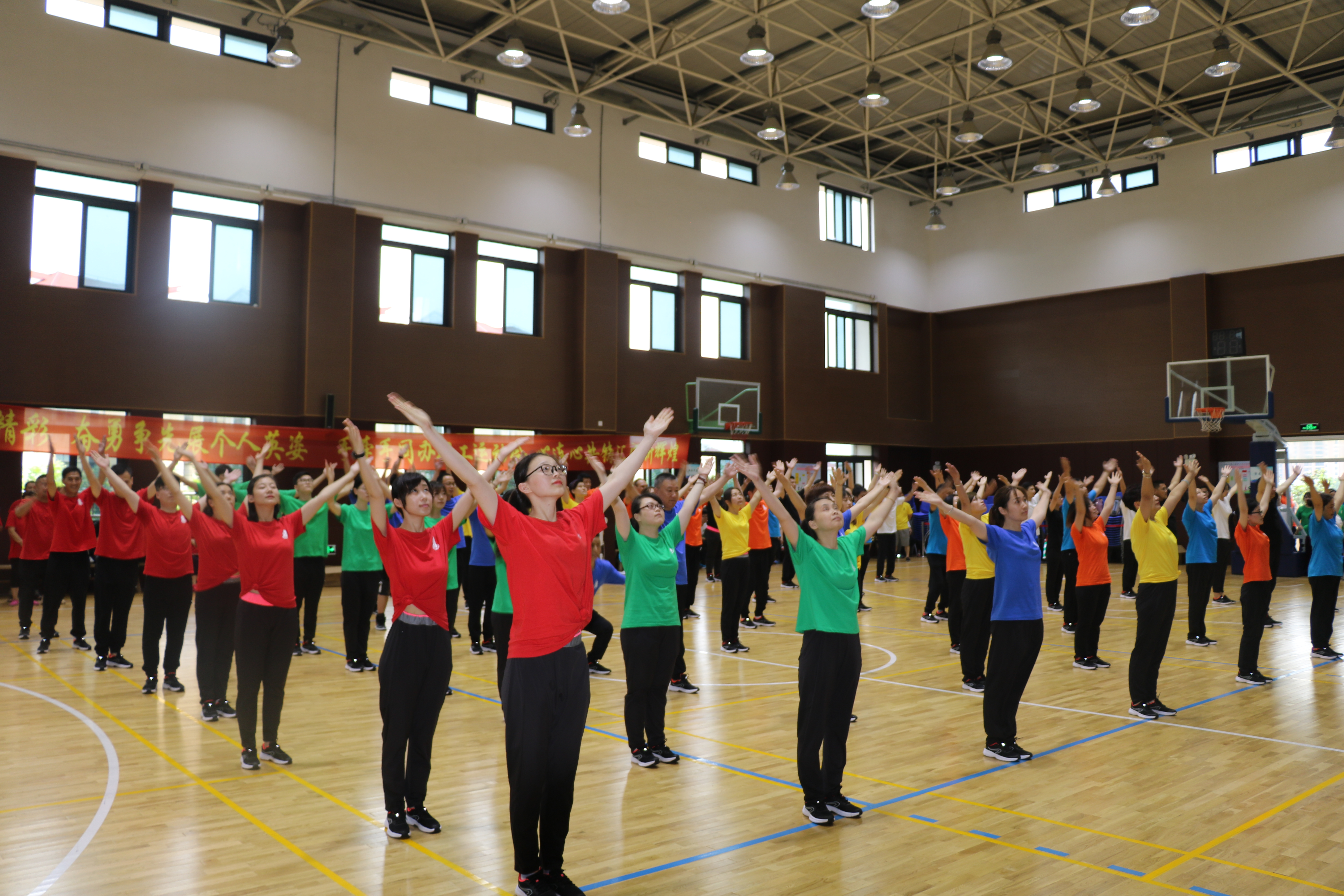 运动会上大家精神饱满,一个个整装待发。本次运动会有广播体操、疯狂的毛毛虫、拔河三个集体项目;赶“猪”进栏、定点投篮、飞常一镖、联合传递、自行车慢骑、模板接力、企鹅漫步、粗中有细八个个人项目。在广播体操比赛中,各组队员穿着整齐,步伐一致。都展现出了各自区域最好的精神风貌和状态。运动会中场面最激烈的就是拔河比赛了,赛场上的运动员们都铆足了劲,全力拼搏。“一二一二”的口号响彻比赛会场,啦啦队的加油声更是此起彼伏。一些个人项目更是竞争与趣味并行,参赛队员全力以赴的精神更是感染着每一位观众。