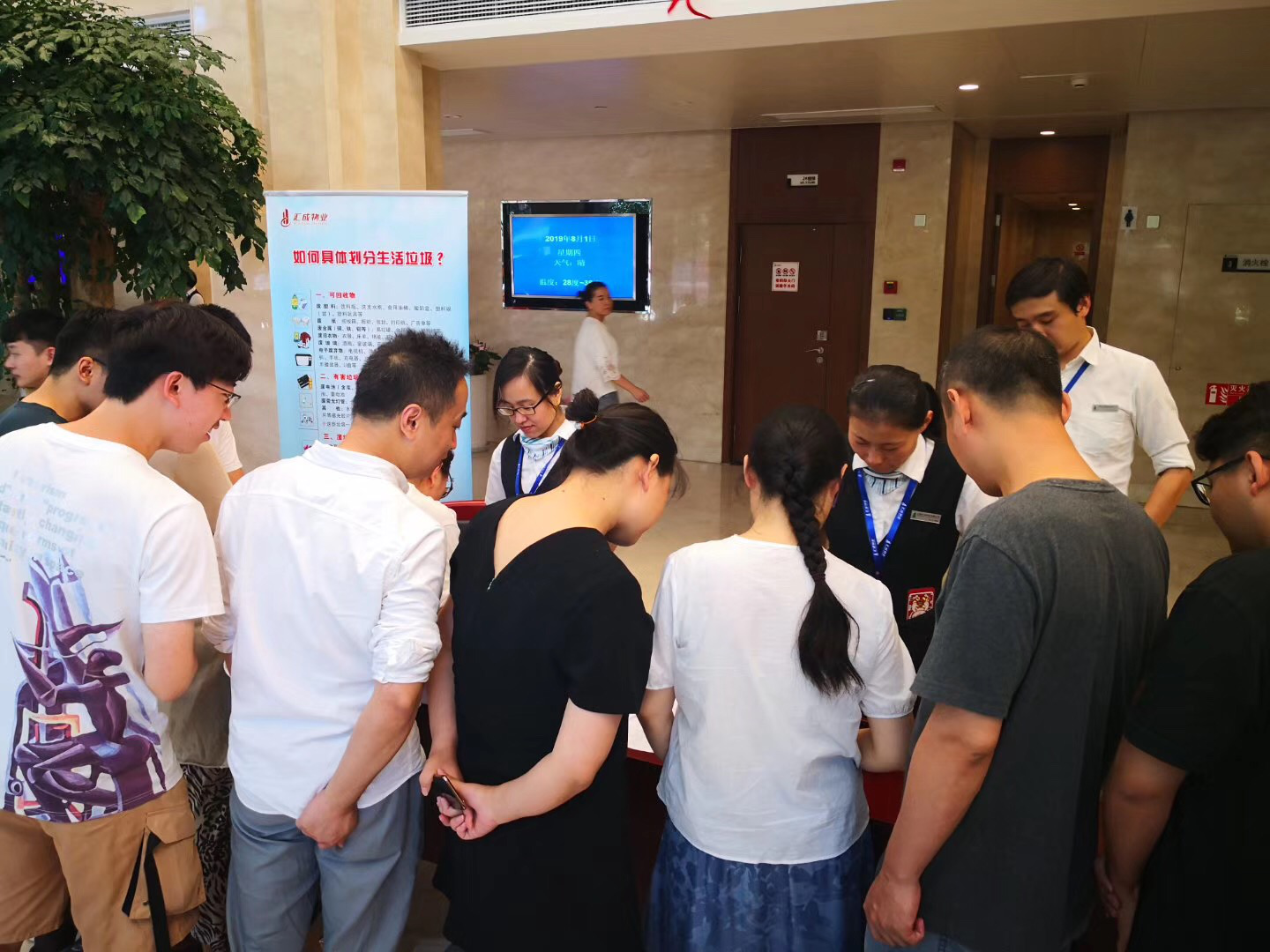为此,物业项目经理起草了关于漕河泾实业大厦垃圾分类工作推进实施方案,并召开管理层垃圾分类动员会和垃圾分类培训会。后续也对大厦楼宇业户发放通知进行垃圾分类的宣传、签订垃圾分类的责任协议和指定午间开始物业服务中心人员在每层的次电梯厅指引客户垃圾分类等工作。