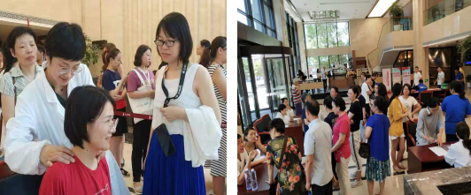 此次检查项目也是针对白领们的健康状况,特别邀请了中医治未病与中医康复科的两位专家。两位专家从医数十年,不仅发现问题,还给了现场咨询的人们合理的健康建议,而中医康复科更是大排长龙,中医专家见现场气氛热烈,主动提出了为白领们现场做一些简单的物理复位按摩,为白领们舒缓备受折磨的颈椎、腰椎等症状。