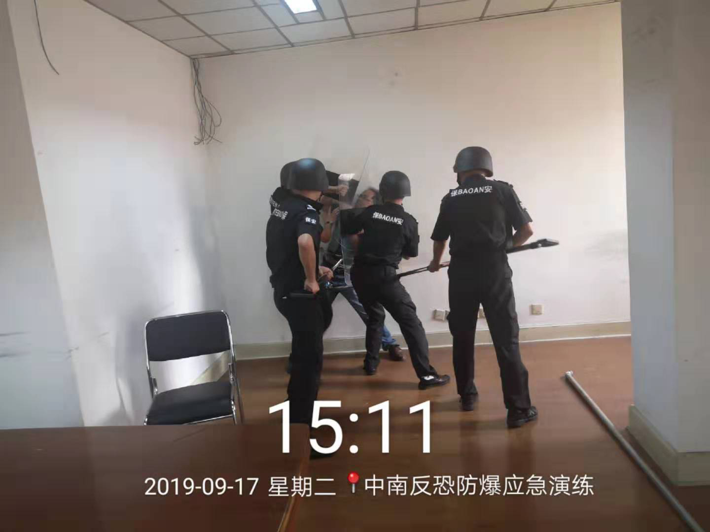 2019年9月17日下午三点,为有效防范突发伤害事件,切实保障商务楼各工作人员及租户人身安全,及时处置侵害人身安全的恶性事件,维护商务楼安全稳定,增强各人员在真实情景下的心理素质和反恐防暴意识,提高工作人员应对能力,汇成物业资产管理部特在中南商务楼组织反恐防暴应急演练。