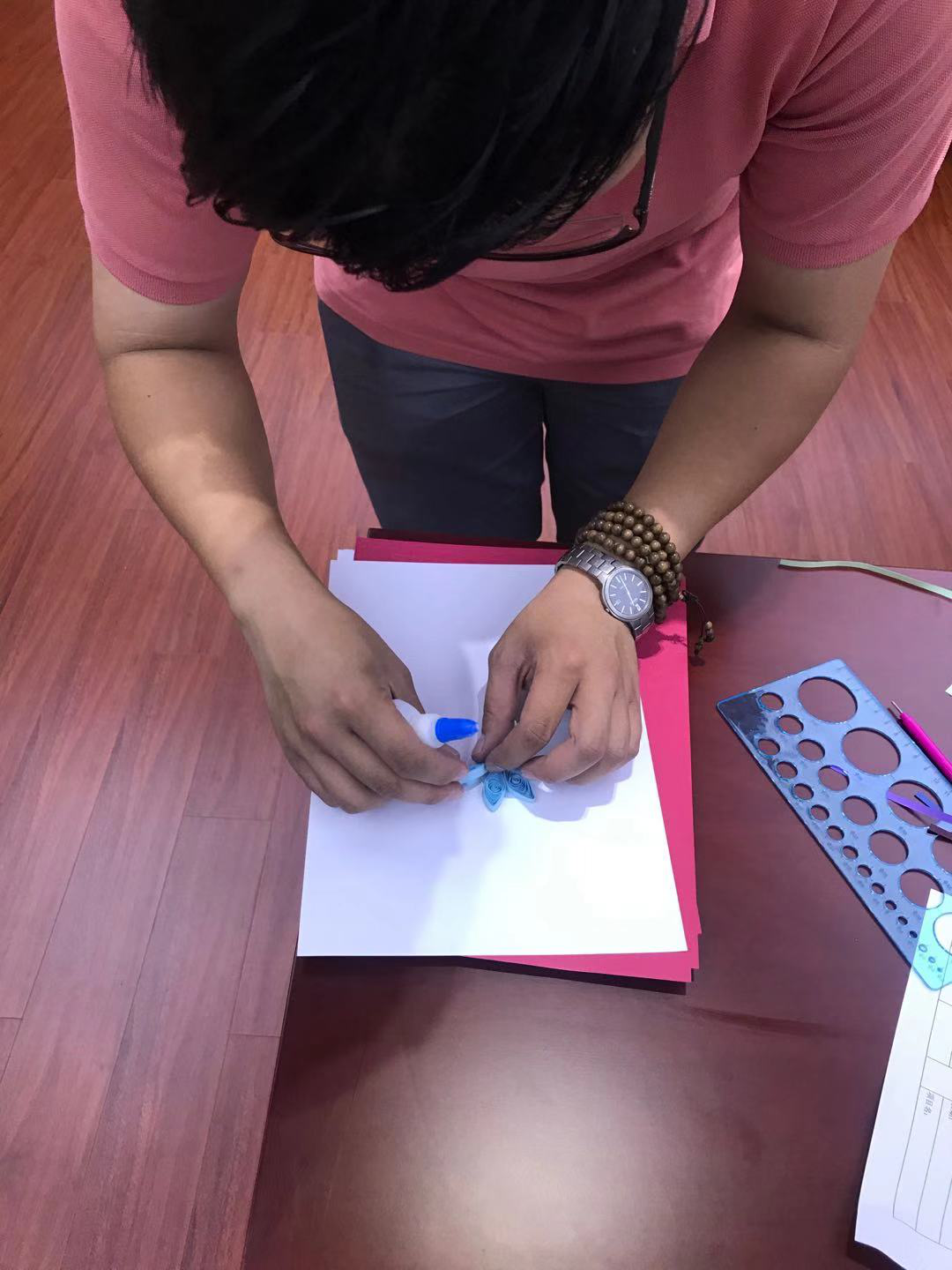 衍纸,也称卷纸,是纸艺的一种形式。衍纸发源于十八世纪英国,流传于英国王室贵族间的一种手工艺术,简单而实用的生活艺术运用卷、捏、拼贴组合完成。为丰富大厦白领午休期间的业余生活,汇成物业漕实业服务中心携手徐汇区漕河泾街道开展午间一小时“衍纸”活动。