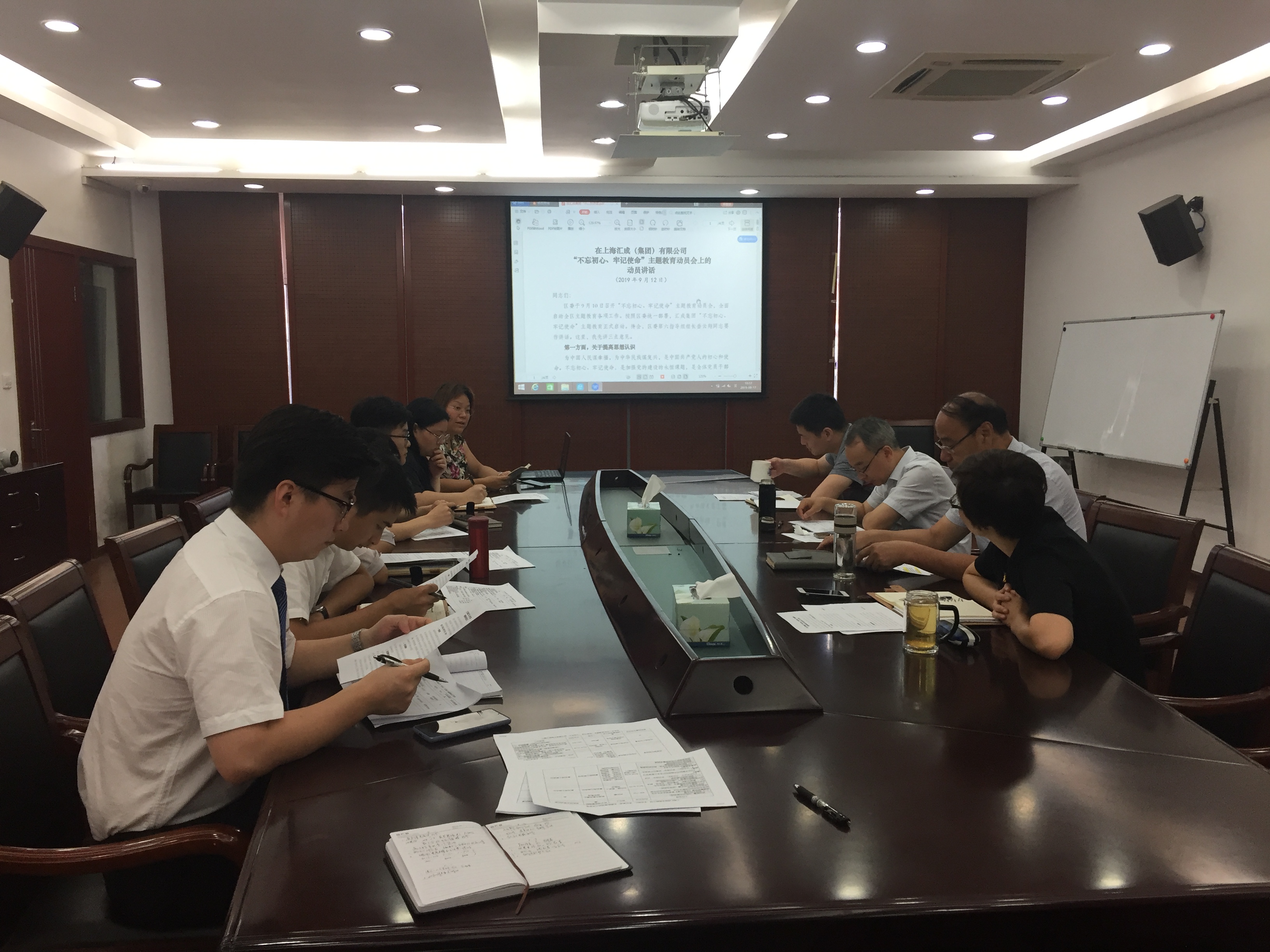 汇成物业党支部组织全体党员(含预备党员)共36人集中在线观看研习会直播,用新媒体的新型学习方式,增强主题教育的吸引力和感染力。为了便于党员同志进行交流体会,相互启发提高,党支部所属的四个党小组分别组织学习了《习近平关于“不忘初心,牢记使命”论述摘编》、《习近平新时代中国特色社会主义思想学习纲要》及《党章》,各位党员在学习会上积极发表个人体会和学习感言。