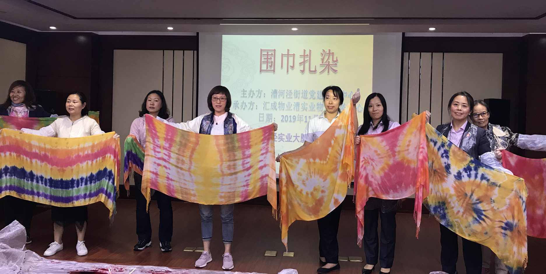 通过本次的“扎染”活动,大家在过程中收获了许多幸福和欢笑,并感谢漕河泾街道和汇成物业漕实业大厦携手举办的丰富。