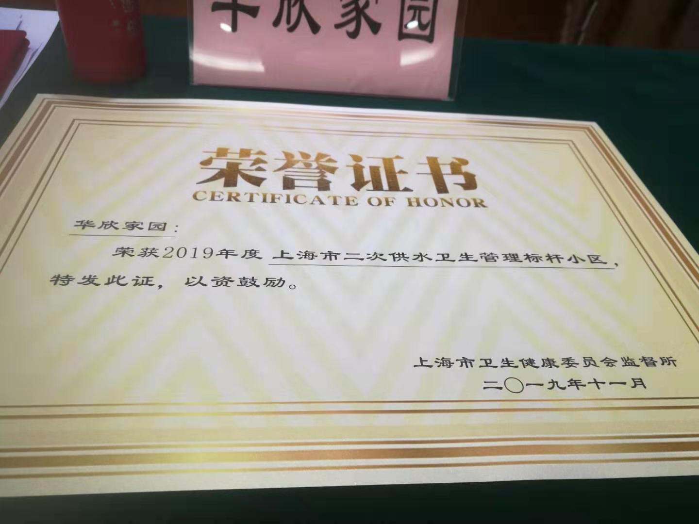2019年11月25日华欣家园作为徐汇区唯一一个住宅小区被评选为2019年度上海市二次供水卫生管理标杆小区。在全市八个被评选为二次供水卫生管理标杆居民住宅小区中名列第三。