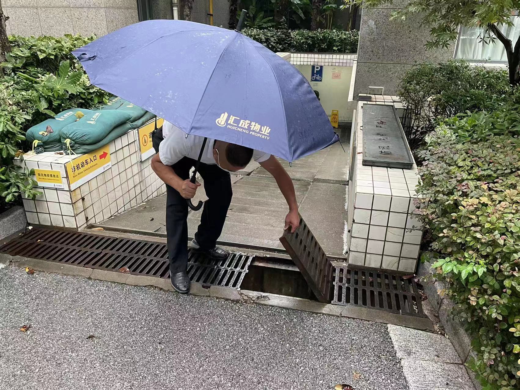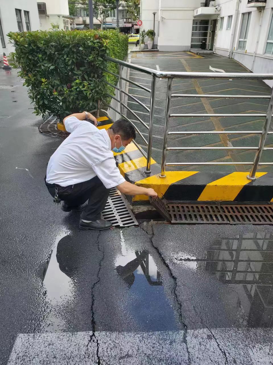 各项目对防汛防台物资进行清点,确保物资齐全完好,应对可能出现的意外。同时,冒着风雨对所有项目的“三沟”、落水管道和窨井等设施进行安全检查,确保不留一丝隐患。通过多个小时的奋战,共处理隐患128处,其中清理屋面杂物、疏通屋面排水沟72处,雨水管疏通33处,雨污水井清污23处。