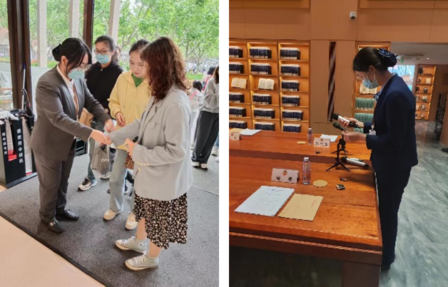 除了应对人流高峰外,书院还要负责接待接踵而至的重要会议和活动。座谈会、读书会、研讨会、论坛活动等丰富了书院的内涵,也锻炼出了工作人员能吃苦、能战斗的精神风貌。“有时候忙起来,刚结束一场会议,就要立马换一身衣服到别的岗位帮忙。”时东颖说道。几天的忙碌下来,突发的支气管炎已经令她说不出话来,但她时刻不停,用无微不至彰显着“最美坚守力量”。